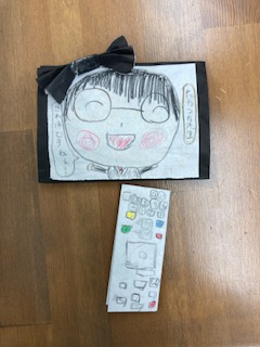 今日ドキに出た記念で匠の小学生が私のイラストを作ってくれました。下のはリモコンだそうでテレビに出ている高塚先生だそうです。